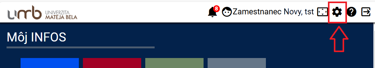 Prihlásený používateľ si môže zmeniť heslo stlačením na ikonu nastavenia.