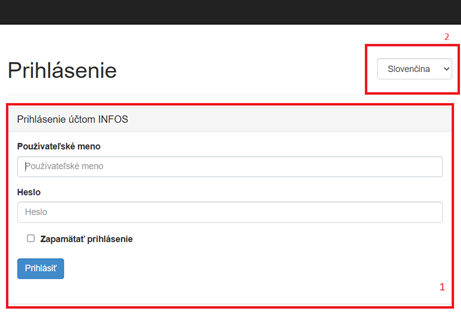Oblasť 1 – prihlasovacia zóna, kde je potrebné zadať prihlasovacie údaje používateľa