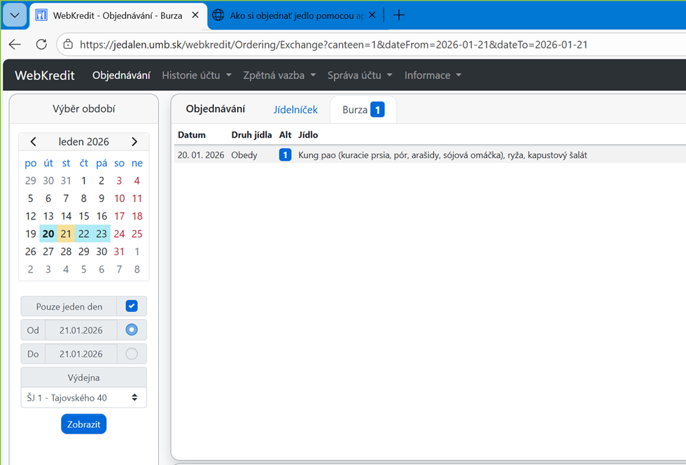 Jedlo, ktoré bolo stornované a zaradené do burzy je možné nájsť v záložke “Burza” vo webovej aplikácii WebKredit: