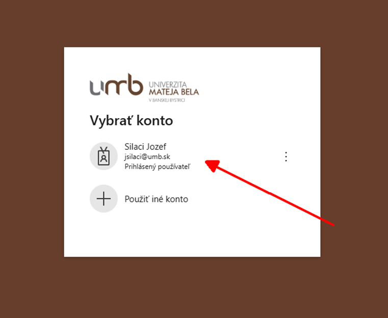 6. Následne sa zobrazí známe okno pre prihlásenie používateľa do Microsoft 365. Kliknite na svoje školské konto a ďalej postupujte známym spôsobom: