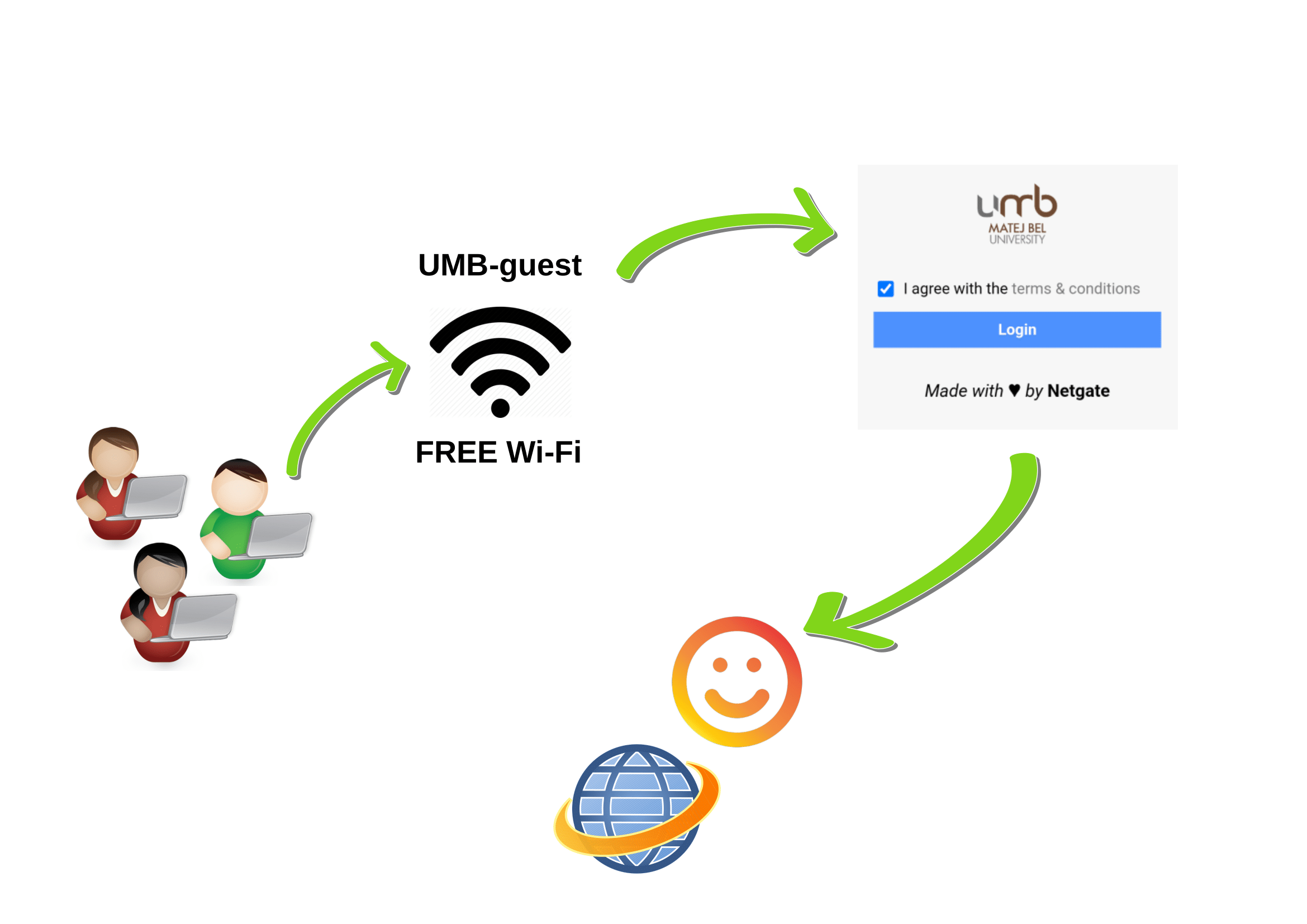 Sieť UMB-guest je otvorená, zabezpečená bezdrôtová sieť, pri ktorej už nikdy nebudete musieť pátrať po aktuálnom hesle aby ste sa mohli pripojiť.